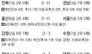 전북의 이동국은 국가대표팀의 이동국과 달랐다. ‘라이언 킹’ 이동국이 2014 브라질 월드컵 아시아지역 최종 예선을 끝내고 소속 팀 전북에 복귀한 뒤 나선 첫 경기에서 골맛을 봤다. 이동국은 26일 수원월드컵경기장에서 열린 K리그 클래식(1부 리그) 수원과의 방문경기에서 전반 32분과 후반 추가 시간에 한 골씩 넣으며 두 차례 골망을 흔들었다. 첫 골은 그의 전매특허인 발리슛이었다. 이동국은 페널티지역 안에서 받은 케빈의 헤딩 패스를 터닝 왼발 발리슛으로 연결해 시즌 6호 골을 기록했다. 후반 추가 시간에는 골문 앞에서 침착한 가슴 트래핑에 이은 오른발 슛으로 두 번째 골을 성공시켰다. 승리는 수원이 챙겼다. 수원은 난타전 끝에 전북을 5-4로 꺾었다. 수원은 2-3으로 뒤진 채 시작한 후반에 라돈치치가 연속 골을 성공시켜 전세를 뒤집었다. 수원은 후반 45분 이종민의 쐐기 골까지 터져 승리를 거뒀다. 수원이 안방에서 전북을 꺾은 건 2005년 10월 16일 이후 8년 만이다. 이날 경기에서 전북 최강희 감독은 벤치에 앉지 않았다. 월드컵 최종 예선에서 대표팀을 이끌었던 최 감독은 대한축구협회와의 계약기간이 30일까지로 아직 남아 있어 7월 초에나 전북 사령탑에 복귀할 것으로 보인다. 전북은 전날 선임된 신홍기 수석코치가 임시로 지휘봉을 잡았다. 성남은 인천을 4-1로 꺾었다. 인천의 이천수는 어시스트 추가에 실패해 30-30클럽(30득점-30어시스트) 가입을 다음으로 미뤘다. 이천수는 통산 42득점, 29어시스트를 기록 중이다. 한편 이날 두 경기에서 터진 14골을 포함해 14라운드 7경기에서 모두 34골이 쏟아져 한 라운드 역대 최다골을 기록했다.이종석 기자 wing@donga.com}