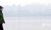 27일 오후 한 시민이 서울 원효대교 남단 한강시민공원을 걷고 있다. 황사와 미세먼지가 심해 한강 북쪽이 잘 보이지 않는다. 이날 전국의 미세먼지 농도는 한때 ‘나쁨’ 수준까지 치솟았다. 미세먼지는 28일 오후부터 보통 수준으로 회복되겠지만 아침 최저기온은 영하 6도에서 영상 6도로 전날보다 떨어지면서 다시 추워지겠다. 김재명 기자 base@donga.com}