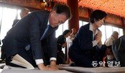 더불어민주당 문재인 전 대표(왼쪽)가 19일 서울 조계사에서 열린 한국불교지도자 신년하례법회에 참석해 삼배를 올리고 있다. 문 전 대표는 “작년 한 해는 나쁜 정치 때문에 국민이 많은 고통을 겪었다”며 정권 교체의 필요성을 강조했다. 오른쪽은 추미애 민주당 대표. 김재명 기자 base@donga.com}