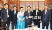 일본관광협회 회장 니시다 아쓰토시 도시바그룹 회장(왼쪽에서 다섯 번째)과 남상만 한국관광협회 회장(왼쪽에서 네 번째)이 13일 서울 종로구 와룡동 한국전통음식연구소(소장 윤숙자·왼쪽에서 세 번째)에서 만찬을 하면서 한일 관광교류 증진 방안에 관해 의견을 교환했다. 니시다 회장은 방한 중 LG그룹 구본무 회장과 삼성전자 이재용 사장을 만나 전자산업 동향 등에 관해서도 환담했다. 신원건 기자 laputa@donga.com}