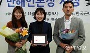동아일보 사회부 김예윤, 국제부 조은아, 사진부 김재명 기자(사진 왼쪽부터)가 30일 서울 종로구 한국근대불교문화기념관에서 열린 2017 만해언론상 시상식에서 특별상을 수상했다. 미등록(불법체류) 이주아동의 인권 문제를 다룬 ‘그림자 아이들’ 시리즈와 후속 보도인 ‘그림자 아이들 그 후’로 인권 향상에 기여한 공로를 인정받았다. 상금은 전액 ‘그림자 아이들’에게 기부하기로 했다. 위은지 기자 wizi@donga.com}