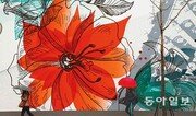 이 비가 그치면 벽 속의 꽃도 걸어 나와 싹을 틔우겠지. 언제나 그러했던 것처럼…. 16일 촉촉이 비가 내리는 서울 서대문구의 한 공사장 외벽에 그려진 꽃 그림이 새삼 싱그럽게 느껴집니다. 양회성 기자 yohan@donga.com}