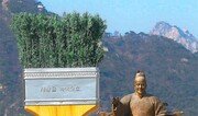 24일 서울 광화문광장에 대형 붓 형태의 조형물이 설치돼 눈길을 끌고 있다. 산림청은 제70회 식목일(4월 5일)을 앞두고 국민들의 관심을 높이기 위해 광고전문가 이제석 씨(33)와 함께 이 조형물을 만들었다. 양회성 기자 yohan@donga.com}