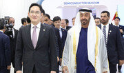 이재용 삼성전자 부회장이 26일 경기 화성시 삼성전자 사업장을 찾은 무함마드 빈 자이드 알 나하얀 아부다비 왕세제 겸 아랍에미리트(UAE) 통합군 부총사령관에게 삼성전자의 5세대(5G) 장비 및 반도체 사업 현장을 직접 소개했다. 두 사람은 이달 11일에도 아부다비에서 만나 5G 사업 분야 협력을 논의한 바 있다. 이 부회장은 이날 무함마드 왕세제에게 빅데이터와 인공지능(AI), 센서 기술, 차세대 통신 등 첨단 기술을 접목해 스마트 팩토리로 구축한 반도체 제조 공정을 안내했다. 세계 최초로 상용화한 5G 통신장비를 통해 빠른 속도와 안정성 등 특장점을 직접 시연해 보이기도 했다. 무함마드 왕세제가 착용한 가상현실(VR) 기기에는 드론이 찍은 화성사업장의 360도 전경이 5G 통신장비를 통해 초고화질로 스트리밍됐다. 재계 관계자는 “중동 국가들이 5G 통신 보안에 매우 민감한데, 이 부회장이 직접 삼성전자의 5G 기술력을 강조하면서 중동 시장 선점에 나선 것으로 보인다”고 설명했다. 삼성전자는 이번 행사를 통해 네트워크 장비와 단말기, 칩셋 등 5G 관련 모든 분야에서 글로벌 경쟁력을 보유하고 있는 유일한 기업임을 강조한 것으로 알려졌다. 무함마드 왕세제는 방명록에 “더 나은 삶을 위해 이곳에서 이뤄지고 있는 혁신과 최신 기술에 깊은 인상을 받았다”며 “UAE는 새로운 기술을 도입하는 데 큰 관심이 있으며 사회에 기여하는 기업들을 지원한다”고 적었다. 삼성전자는 무함마드 왕세제에게 기념 문구가 새겨진 12인치 반도체 웨이퍼를 선물했다. UAE는 2020년 ‘두바이 엑스포’를 앞두고 중동·아프리카 지역 최초로 5G 이동통신 서비스 전면 상용화를 위해 5G 분야에 대대적인 투자를 할 예정이다. 한편 문재인 대통령은 이날 청와대 상춘재에서 무함마드 왕세제와 비공개 만찬을 가졌다. 지난해부터 시작된 상춘재 보수 공사가 끝난 뒤 처음 맞이한 외빈이다. 두 사람은 이어 27일 오전 청와대에서 정상회담을 갖고, 공식 오찬을 함께한다. UAE 특임 외교 특별보좌관을 맡고 있는 임종석 전 대통령비서실장을 비롯해 이 부회장, 최태원 SK 회장 등 기업인들도 대거 참석할 예정이다. 정상회담과 오찬을 통해 청와대는 UAE와의 ‘특별 전략적 동반자 관계’를 더욱 공고히 하고 양국 투자, 무역, 인적 교류 확대를 위한 실질적 방안을 논의할 계획이다.김지현 jhk85@donga.com·한상준 기자}