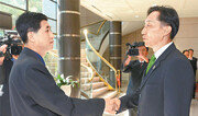 “(지난 도발을) 다 따지면 언제 무슨 일을 하겠습니까. 잘못을 들춰서 따지기보다 앞으로 어떻게 잘할 것인가에 논의를 집중합시다.”(황병서 북한군 총정치국장) “불과 한 달 전에 일어난 일, 이번 사태의 직접적 원인입니다. 젊은 사람의 일생이 걸린 문제입니다.”(김관진 대통령국가안보실장) 22일 오후 6시 반 판문점 평화의 집. 김 실장이 ‘목함지뢰’ 도발을 언급하며 사과가 우선이라는 뜻을 전하자 황병서는 “잘 모르는 일”이라며 어물쩍 넘어가려 했다. 김 실장은 목함지뢰가 폭발한 장소의 사진을 보여주면서 “물에 쓸려 온 게 아니다. 누군가 와서 묻은 것이다”라며 황병서를 압박했다. 그런데도 북한이 대북 확성기 방송 중단만 이야기하자 김 실장은 “나는 전군을 지휘했던 사람”이라고 언성을 높였다. 순간 회담장에는 긴장감이 돌았다. 회담을 지켜본 통일부 당국자는 “(북한은) 속된 말로 과거는 묻지 말라는 식이었다”고 전했다. 무박 4일 43시간 마라톤 협상. 김 실장과 홍용표 통일부 장관, 황병서와 김양건 북한 노동당 비서가 마주 앉은 ‘2+2 전체회의’ 4회, 김 실장과 황병서가 비공개로 만난 ‘일대일 회담’ 10회, 실무자가 문구 조정 등을 협의하는 ‘실무 회담’ 10회 등 모두 24회나 열릴 정도로 끈질긴 협상이었다. 남북은 서로의 의견 차만 확인한 채 23일 오전 4시 15분 정회했다. 23일 오후 3시 반부터 시작된 2차 접촉에서는 ‘최근 군사분계선 비무장지대 남측 지대에서 발생한 지뢰 폭발로 남측 군인이 부상을 당한 것에 대해 유감을 표명한다’는 데 합의가 이뤄졌다. 하지만 재발 방지를 약속하는 문구를 두고 막판까지 대립이 계속됐다. 북한은 한미 연합 군사연습 중단, 대북 제재인 5·24조치 해제 등은 관심이 없었다고 한다. 오로지 대북 확성기 방송 중단만 끈질기게 요구했다. 황병서와 김양건은 모두 “이 문제를 반드시 풀어야 한다. 그냥 돌아갈 수 없다”며 초조함을 드러내기도 했다. 그만큼 절박해 보였다. 황병서가 “김 실장 선생이 크게 결단을 하시면 된다”고 남측에 물러서기를 요구하자 김 실장은 “황 총정치국장께서 크게 양보하시는 건 어떠냐”고 맞받아쳤다. 고성도 없고 시종일관 차분한 분위기였지만 팽팽한 신경전은 회의장을 짓눌렀다. 소파에서 쪽잠을 자며 지루한 협상을 이어갔다. 숙박이나 샤워 시설이 없어 3일 동안 샤워도 못 하고 간신히 세수만 했다. 북측 대표단은 평화의 집 인근에서 배달해 온 한식 도시락을 나눠 먹거나 북한으로 가서 식사를 하고 돌아오기도 했다. 컵라면을 먹는 모습도 목격됐다. 24일 저녁 메뉴는 우리가 준비한 매운탕이었다. 다만 협상 중에는 남북이 식사를 같이하지 않는다고 한다. 시간이 흐를수록 황병서가 ‘귀측’ ‘김관진 실장’이라는 공식 호칭 대신에 ‘김 선생’ ‘김 실장 선생’으로 부르는 등 분위기가 다소 누그러졌다. 김 실장과 황병서가 비공개 회담을 하는 동안 김양건과 홍 장관도 자연스럽게 따로 만나 남북 문제를 논의했다고 한다. 홍 장관은 25일 “오랜 시간 같이 계속 대화를 나누다 보니까 상대방을 조금 더 알 수 있는 기회가 됐다. 남북 대화에 도움이 될 것”이라고 밝혔다. 24일 오후 11시 남북은 주요 쟁점에 대한 견해차를 좁혔다. 25일 0시 55분 마침내 6개 문항이 타결됐다. 북한은 이날 오전 2시 정각에, 우리 정부는 오전 2시 3분 마라톤 협상 결과물인 남북 공동보도문을 발표했다. 북한의 발표가 3분 빨랐다.우경임 기자 woohaha@donga.com}