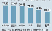 한국의 인적자원 활용 능력이 전 세계 130개국 가운데 27위로 꼽혔다. 노르웨이(1위) 핀란드(2위) 등 북유럽 국가에는 미치지 못하지만 영국(23위) 프랑스(26위) 등과 비슷한 상위권으로 나타났다. 7일 세계경제포럼(WEF)의 ‘2017 글로벌 인적자본 보고서’에 따르면 한국의 인적자본지수는 69.88점으로 평가 대상 130개국 가운데 27위에 올랐다. 지난해(76.89점)보다 점수는 떨어졌지만 순위는 32위에서 27위로 5계단 상승했다. WEF는 인적자본의 질을 평가하기 위해 각국 사람들을 총 5개 연령대로 나눈 뒤 학습, 고용, 개발 등의 분야를 0(최저)에서 100점(최고)까지로 평가한다. 이를 모은 것이 종합점수가 된다. 한국은 15∼24세의 문해(文解) 및 산술 능력이 최고점인 100점을 나타냈다. 같은 연령대의 고등교육 등록 비율 역시 세계 2위 수준으로 집계됐다. 반면 노동참여 등 인적자원 고용 부분에서 상대적으로 점수가 낮았다. 한국의 15∼24세 노동참여율은 28.1점에 불과해 130개국 가운데 120위로 집계됐다. 25∼54세 노동참여율(77.4점) 역시 101위에 그치는 등 한국의 낮은 고용률이 인적자본지수 하락에 영향을 끼쳤다. 남녀에 따라 고용률 격차가 큰 점 역시 문제점으로 지적됐다. 한편 전체 순위에서는 노르웨이와 핀란드에 이어 스위스(3위), 미국(4위), 덴마크(5위) 등이 최상위권에 올랐다. 아시아 국가 중에는 싱가포르(11위)의 순위가 가장 높았고 일본(17위), 한국이 뒤를 이었다. 중국은 34위로 나타났다.세종=박재명 기자 jmpark@donga.com}