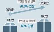 “월급은 쥐꼬리만큼 오르는데 세금은 너무 많이 늘었네. 유리지갑이라 그런가.” 봉급생활자들이 ‘사장님’인 자영업자를 만날 때 흔히 토로하는 말이다. 자진 신고로 납부하는 사업자들의 종합소득세와 달리 근로소득세는 소속 회사가 원천징수해 납부하기 때문에 상대적으로 세금 불이익을 받는다는 푸념이다. 16일 국세청이 박명재 자유한국당 의원실에 제출한 ‘2008∼2015년 근로소득 및 종합소득 추이’를 분석한 결과 이는 상당 부분 사실인 것으로 드러났다. 근로소득자가 소득 증가로 떠안아야 하는 세 부담이 자영업자보다 가파르게 늘어나고 있기 때문이다. 국세청에 따르면 2008년 2530만 원이던 국내 근로소득자의 1인당 평균 총급여는 2015년 3260만 원으로 7년 새 28.9%(730만 원) 늘어났다. 반면 이 기간 1인당 근로소득세 평균 납부액은 60%(100만 원→160만 원) 증가했다. 추이만 보면 세금이 늘어난 폭이 월급이 증가하는 폭의 갑절에 해당하는 셈이다. 반면 사업자들이 주로 내는 종합소득세는 차이가 덜했다. 2008년과 비교해 종합소득세 납부자들의 2015년 1인당 평균 소득은 590만 원(24.9%) 증가했는데 이 기간 1인당 종합소득세 납부액은 100만 원(330만 원→430만 원·30.3%) 늘어나는 데 그쳤다. 세금 증가율과 급여 증가율의 격차가 5.4%포인트로 근로소득세(31.1%포인트)에 비해 확연히 낮았다. 박 의원은 “근로소득자들은 소득 명세가 투명해 납부세액이 꾸준히 늘지만 종합소득자들은 소득이 늘어도 세금을 줄일 여지가 많기 때문에 생긴 일”이라고 지적했다. 이어 “이런 현상이 계속되면 조세 형평성이 약화되면서 급여생활자들의 조세 저항이 커질 수 있다”고 우려했다. 이에 대해 국세청 측은 “세금을 징수하는 과정에서 통계로 나타난 현상인 만큼 특별히 분석하지는 않을 예정”이라고 밝혔다. 근로자들의 평균 납부 세금이 늘었다고 해서 모든 봉급생활자의 세금이 늘어난 것은 아니다. 상대적으로 높은 세율을 적용받는 고소득자들의 세 부담이 급격히 커지면서 평균 납세액을 끌어올린 것으로 나타났다. 연봉 1억 원을 초과하는 억대 연봉자 수는 2008년 19만4939명에서 2015년에는 59만6124명으로 크게 늘었다. 이들이 낸 세금은 2015년 14조7511억 원으로 전체 근로소득세의 52.2%를 차지했다. 2008년만 해도 그 비율은 37.8%였다. 마찬가지로 연봉 4000만 원 이하 급여생활자 수는 2008년(약 1110만 명)보다 2015년(1245만 명)에 135만 명가량 증가했다. 하지만 이들이 낸 세금 총액은 8년 사이에 1조3560억 원에서 1조2600억 원으로 오히려 줄어들었다. 그만큼 과세점 이하 근로자 수가 늘어났기 때문으로 분석된다. 홍기용 인천대 교수는 “소득공제를 세액공제로 바꾸는 세법개정 과정에서 연소득 5500만 원 이상 납세자의 부담이 커진 대신 저소득 근로자와 자영업자의 세 부담은 크게 늘지 않았다”며 “특정 계층에 쏠리는 세 부담을 완화해 주는 방안을 마련할 때”라고 지적했다.세종=박재명 기자 jmpark@donga.com}