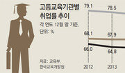 4년제 대학 졸업자의 취업률이 4년 연속 떨어졌다. 한국의 고용률은 경제협력개발기구(OECD) 회원국 중 중하위권인 반면 평균 근로시간은 멕시코에 이어 두 번째로 길었다. 28일 교육부와 한국교육개발원이 발표한 ‘2016년 고등교육기관 졸업자 취업 통계’에 따르면 2016년 일반대 전문대 교육대 산업대 일반대학원 등 전체 고등교육기관 졸업자의 취업률은 67.7%로 전년보다 0.2%포인트 상승했다. 이는 2016년 2월 고등교육기관 졸업자 58만695명의 취업 상황을 2016년 12월 31일 기준으로 전수 조사한 결과다. 전체 취업률은 소폭 증가했지만 고등교육기관 졸업자 10명 중 6명꼴인 4년제 일반대 졸업자 취업률은 4년 연속 하락했다. 2012년 66.0%를 기록한 이후 △2013년 64.8% △2014년 64.5% △2015년 64.4% △2016년 64.3%로 매년 감소 추세다. 반면 전문대 졸업자의 2016년 취업률은 70.6%, 일반대학원 졸업자의 취업률은 78.3%로 모두 2년 연속 상승했다. 회사에 취업한 졸업자의 비율은 줄고, 프리랜서나 1인 창업자 비율이 늘어난 점이 눈에 띈다. 취업자 중 건강보험 직장가입자 비율은 91.1%로 전년도 91.9%보다 0.8%포인트 감소했다. 산업계 불황으로 기업들의 신규 채용 규모가 줄어든 데 따른 것으로 풀이된다. 프리랜서는 5.3%에서 5.8%로, 1인 창업자는 1.3%에서 1.4%로 각각 소폭 늘었다. 한편 고용노동부가 발표한 ‘통계로 보는 우리나라 노동시장의 모습’에 따르면 한국의 15∼64세 고용률(2016년 기준)은 66.1%로 OECD가 조사한 35개국 중 21위에 그쳤다. OECD 평균(67%)에도 미치지 못한 수치다. 특히 근로자 1인당 연평균 근로시간은 2071시간으로 OECD 조사 대상 28개국(2015년 기준) 가운데 멕시코(2348시간)에 이어 2위였다. 한국 근로자의 연평균 근로시간은 OECD 평균(1692시간)보다 379시간 많고, 가장 짧은 독일(1301시간)과 비교하면 무려 770시간이나 길었다. 한국 근로자가 독일 근로자보다 연간 96일 정도(하루 8시간 근무 기준) 더 일한 셈이다.유덕영 firedy@donga.com·유성열 기자}