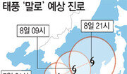 제9호 태풍 ‘말로’(마카오에서 정한 이름으로 구슬이라는 뜻)가 7일 오후 우리나라 남해안 일대에 상륙할 것으로 보인다. 말로는 5일 오후 11시 현재 제주 서귀포시 남쪽 약 300km 부근 해상에서 시속 12km로 한반도에 접근하고 있다. 기상청에 따르면 말로는 현재 중심기압 994hPa(헥토파스칼), 최대풍속 초속 21m, 강풍반경 220km의 약한 소형급 태풍이다. 기상청은 말로가 7일 오전 서귀포시 서북쪽 약 70km 부근 해상으로 접근한 뒤 이날 오후 전남 목포시 동북동쪽 약 50km 부근 육상에 상륙할 것으로 내다봤다. 이후 말로는 8일 새벽 경북 안동시 동남쪽 약 60km 부근 육상을 거쳐 독도 방면으로 빠져나갈 것으로 예보했다. 태풍 말로의 영향권에 접어든 5일 오후 서울 일부 지역에 천둥과 번개를 동반한 40mm 이상의 폭우가 쏟아져 서울 서초구 센트럴시티 상가가 낙뢰로 정전이 되는 등 피해를 보았다. 이진구 기자 sys1201@donga.com}