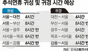 올 추석 귀성은 추석 전날인 21일 오전, 귀경은 추석 당일인 22일 오후에 가장 붐빌 것으로 보인다. 한국교통연구원은 추석 연휴 교통수요를 조사한 결과 이번 주말을 포함해 18∼26일 모두 4949만여 명, 하루 평균 550만 명이 이동할 것으로 예상된다고 12일 밝혔다. 이에 따라 승용차로 고속도로를 이용할 경우 귀성 때는 서울에서 대전 4시간, 부산 8시간, 광주 6시간 30분, 목포 6시간 30분, 강릉 4시간 30분이 걸릴 것으로 예상했다. 귀경 때는 부산∼서울 8시간 30분, 광주∼서울은 6시간이 걸릴 것으로 추정했다. 주요 교통수단으로는 승용차 81.1%, 버스 13.6%, 철도 4.1%, 항공기와 여객선이 각각 0.7%와 0.6%로 조사됐다. 정부는 추석 연휴 기간을 특별교통대책기간으로 정해 철도와 버스는 평상시보다 8% 이상, 항공기와 연안여객선의 수송능력은 각각 5%와 22% 늘리기로 했다. 또 교통량 분산을 위해 지상파 방송과 인터넷, 휴대전화 등을 통해 실시간으로 교통 혼잡 상황과 주요 우회도로, 최적 출발시기 정보 등을 제공할 계획이다. 특히 국토해양부 홈페이지(www.mltm.go.kr)를 통해 철도 버스 항공의 대중교통 이용정보와 실시간 도로 정보 등을 내보낸다. 트위터(twitter.com/happytraffic 또는 twitter.com/15882504)를 통해 1시간 간격으로 교통상황 정보를 제공하기로 했다. 이진구 기자 sys1201@donga.com}
