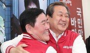 30일 오후 대구를 찾은 새누리당 김무성 대표(오른쪽)가 수성구 대구시당에서 열린 대구·경북 선거대책위원회 회의에서 친박(친박근혜)계 최경환 의원과 포옹하고 있다. 4·13총선 공천 과정에서 극한 갈등을 빚었던 김 대표와 최 의원은 공식 선거운동 시작일(31일) 하루 전 갈등의 진원지였던 대구에서 ‘화합’하는 모습을 연출했다. 대구=김재명 기자 base@donga.com}