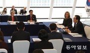 조태열 외교부 2차관(오른쪽)이 14일 서울 중구 밀레니엄힐튼호텔에서 엘리자베스 셔우드랜들 미 에너지부 부장관(조 차관 왼쪽) 등 관계자들이 참석한 가운데 한미 고위급 원자력위원회 전체회의를 열고 있다. 김재명 기자 base@donga.com}