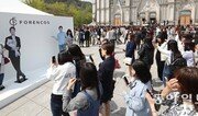 “유시진 대위, 보고 싶지 말입니다.” KBS 드라마 ‘태양의 후예’로 한류 스타 반열에 오른 배우 송중기가 17일 팬 미팅을 열자 일본, 중국 팬을 포함해 4000여 명이 몰렸다. 서울 동대문구 경희대 평화의전당에서 열린 이날 팬 미팅에서 팬들이 송중기 모형 옆에서 기념사진을 찍고 있다. 김재명 기자 base@donga.com}