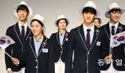 2016 리우데자네이루 올림픽 개막을 100일 앞둔 27일 서울 태릉선수촌에서 열린 올림픽 단복 시연회에서 펜싱 국가대표 김지연(앞줄 왼쪽)과 태권도 국가대표 이대훈(앞줄 오른쪽)이 올림픽 개회식과 폐회식 때 한국 선수단이 입을 정장 단복을 입고 런웨이를 걷고 있다. 한국 선수단은 8월 열리는 리우 올림픽에서 금메달 10개 이상을 따내 종합 순위 10위 안에 드는 것을 목표로 하고 있다. 김재명 기자 base@donga.com}