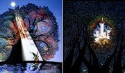 97세의 화가는 종이를 오리고 붙여 자신의 분신과도 같은 난쟁이를 만든다. 난쟁이는 하늘을 날기도 하고, 피리를 불기도 한다. 난쟁이의 까만 실루엣과 빛의 조화는 단순하면서도 풍요로워 즐거운 상상력을 자극한다. 그림자 회화(가게에)의 거장 후지시로 세이지의 전시 ‘빛과 그림자의 판타지전’이 10일부터 서울 서초구 예술의전당 한가람미술관에서 열리고 있다. ‘가게에’는 밑그림을 그리고 잘라 셀로판지를 붙이고, 조명을 스크린에 비춰 색감과 그림자를 표현하는 장르의 작품이다. 밝은 빛과 어두운 빛의 균형, 오려 붙인 재료 등을 치밀하게 계산해 완성하는 가게에는 라이팅 간판광고의 효시이기도 하다. 후지시로는 가게에를 이끌어온 인물로, 이번 전시에서는 작품 160여 점을 선보인다. 후지시로는 이번 한국 전시만을 위한 작품도 제작했다. ‘잠자는 숲’은 잠자는 숲속의 공주를 모티브로 한다. “내 생애 마지막 작품이라 여기며 혼신을 다해 작업했다”는 그는 하루 7시간 이상 작업에 힘을 쏟았다고 한다. 그는 한국의 전래동화에도 각별한 관심을 보이며 한국 어린이가 지닌 동심의 세계를 자신의 작품에 꼭 소개하고 싶다고 밝혔다. 후지시로는 10대에 수채, 유채 교육을 받았다. 학창 시절에 그린 회화도 전시에 포함돼 있다. 20대에 혁신적인 예술을 추구하며 골판지와 전구를 사용해 가게에를 만들기 시작했다. 전쟁이 끝난 후 일본에는 정전이 잦았고, 그 속에서 후지시로는 가게에를 통해 아름다움을 찾았다. ‘일본의 디즈니’라 불리는 그의 화폭에는 따뜻한 환상의 세계가 담겼다. 대표작인 ‘월광의 소나타’는 은은한 달빛에 어린 나뭇잎의 움직임을 생생하게 묘사해 빛과 색이 어우러진 아름다움을 보여준다. ‘은하철도의 밤’은 만화영화 ‘은하철도 999’에 영향을 미친 미야자와 겐지의 동화 ‘은하 철도의 밤’을 그림책으로 만들며 탄생한 작품이다. 이 그림책은 세계 3대 그림책상 중 하나인 브라티슬라바 국제 일러스트레이션 비엔날레(BIB) 황금사자상을 수상했다. 그의 그림은 평화를 추구한다. 작품 ‘슬퍼도 아름다운 평화로의 유산’은 20만 명 이상이 숨진 폐허의 현장인 히로시마 원폭도 위로 종이학이 날아간다. 비극과 함께 평화와 공존을 생각하게 한다. 10월 12일까지. 성인 1만8000원, 청소년 1만4000원, 어린이 1만 원.김태언 기자 beborn@donga.com}
