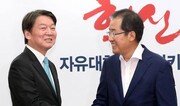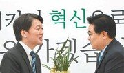 대선 패장(敗將)에서 제1, 제2 야당 대표로 복귀한 자유한국당 홍준표 대표와 국민의당 안철수 대표가 29일 5·9대선 이후 처음으로 만났다. 안 대표가 취임 인사를 하기 위해 서울 영등포구 여의도 한국당 당사로 홍 대표를 예방한 자리에서다. 대선 때 홍 대표가 토론 태도를 놓고 “안초딩(초등학생)”이라고 하고, 안 대표가 홍 대표의 돼지흥분제 논란에 대해 “성폭력 모의”라고 비난했던 것과 달리 이날은 대화 도중 웃음이 터져 나오기도 했다. 홍 대표는 안 대표에게 “국민의당이 소멸될 줄 알았는데 안 대표가 돌아오면서 다시 살아난 것 같다”고 덕담을 건네며 분위기를 띄웠다. 두 사람은 문재인 정부의 국정 운영에 대해서는 한목소리로 비판했다. 홍 대표는 탈원전 정책에 대해 “일부 시민단체와 연대해서 국가 백년대계인 에너지정책을 졸속으로 뒤엎으려고 한다. (안 대표가) 이공계 출신이라 나보다 잘 알 것”이라고 말했다. 이에 안 대표는 “지난 100일 동안 너무 쫓기듯이 굉장히 중요한 결정들이 되어온 것들에 대한 문제 인식을 갖고 있다”고 지적했다. 또 홍 대표가 문재인 대통령의 ‘한반도 운전석론’에 대해 “미국도 일본도 북한도 외면하는데 자기 혼자 운전하겠다고 덤비는 모습이 레커차(견인차)에 끌려가는 승용차에서 혼자 운전하는 것 같다”고 비판하자 안 대표도 “(문재인 정부의) 외교안보가 아주 우려된다. ‘코리아 패싱’이 실제로 일어나면 안 되지 않느냐”고 했다. 두 사람은 농담을 주고받기도 했다. 홍 대표가 “앞으로 대표님하고 채널을 가동해서 저녁도 한 번 모시겠다. 대표님이 또 돈이 많으시니까”라고 말하자 안 대표는 웃으며 “(토크 콘서트 때) 화려한 옷을 입고 나와서 그 옷을 볼 수 있을까 기대했는데 정장을 입었네요”라고 했다. 비공개 회동에서는 홍 대표가 “사법부의 좌편향 문제가 심각하다. 인사 문제에 있어서 두 당이 힘을 합치자”고 하자 안 대표는 “(문재인 정부) 100일 동안 평가들을 보니까 인사 문제가 가장 점수를 낮게 받았다는 여론조사를 봤다”고 답했다고 한국당 전희경 대변인이 전했다. 내년 6월 지방선거 등 향후 연대 가능성에 대해서는 두 사람 모두 부정적인 반응을 보였다. 안 대표가 “우리는 원칙적으로 정면 돌파다. 선거 연대는 없다”고 말하자 홍 대표도 “우리도 그렇다”고 답했다. 다만 홍 대표는 “정치라는 것이 죽을 듯이 싸우다가도 한편이 될 수 있고, 한편이 됐다가도 갈라지는 게 정치다. 사안마다 조율을 하자”고 말했다고 한 참석자가 전했다. 회동을 마무리할 때에는 홍 대표가 안 대표를 갑작스럽게 포옹을 했고, 옆에 있던 참석자들이 웃음을 터뜨렸다. 한편 안 대표는 이날 라디오방송에 출연해 “많은 인재 중 서울시장을 생각하는 이가 있을 텐데 내가 먼저 선언하면 그런 분들을 영입하지 못한다”며 “여러 가능성을 열어놓고 많은 인재를 영입해 진용을 갖추는 게 당 대표가 할 일”이라고 말했다. 홍 대표는 시도당위원장 회의를 주재하며 “바른정당으로 갔다가 복당하는 당원은 조건 없이 받아주기 바란다”며 “만약 그러지 않으면 중앙당에서 직접 복당을 시킬 것”이라고 했다. 송찬욱 song@donga.com·최고야 기자}
