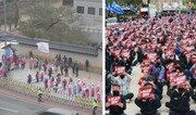 전국민주노동조합총연맹(민노총)이 13일 서울 도심에서 방역 지침상 가능한 참가 인원(299명)보다 10배 이상 많은 4000여 명(경찰 추산)이 집결한 대규모 집회를 강행했다. 민노총 산하 노조원들은 이날 오후 3시 서울 종로구 종묘광장공원에 기습 집결해 윤석열 대통령 당선인의 노동 정책을 규탄했다. 이날 오후 1시 20분경 지도부가 집회장소를 긴급 공지하자 여의도, 종로 일대에 있던 노조원들이 공원으로 모여들면서 순식간에 인원이 불었다. 공간이 부족하자 일부 참가자는 공원 인근 주택가 골목에까지 자리를 잡았다.○ 방역 지침, 법원 결정 어겨이날 민노총 집회는 전날 서울행정법원이 집회를 허용하면서 조건으로 내건 장소와 시간, 참가 인원 제한을 모두 어겼다. 법원은 종로구 통의동 대통령직인수위원회 사무실과 가까운 경복궁 고궁박물관 남쪽 인도와 1개 차로에서 오후 1시부터 2시까지, 299명 이하만 참석해 집회를 열도록 허용했다. 당초 민노총은 ‘1만 명 집결’을 예고하며 인수위 사무실 앞, 광화문광장, 여의도 등 서울 도심 60여 곳에 참가 인원 299명씩 집회 신고를 했다. 그러나 대규모 인원 집결을 우려한 서울시가 감염병예방법에 따라 이들 집회를 8일 일괄 금지 통보했다. 민노총은 서울시 처분의 효력을 정지해 달라며 법원에 집행정지 신청을 냈고 12일 일부가 받아들여진 것이다. 법원은 △체온 측정과 손 소독제 사용 후 집회 장소 입장 △참석자 간 2m 이상 거리 두기 △마스크 착용 등 방역수칙 준수 조건도 제시했지만 집회 현장에서는 거의 지켜지지 않았다. 상당수 참석자 간 거리는 한 뼘이 채 되지 않아 이동 시 어깨가 부딪칠 정도였다.○ “윤 당선인 정책 불평등 악화시킬 것”민노총은 이날 연 ‘차별 없는 노동권, 질 좋은 일자리 쟁취 결의대회’에서 윤 당선인의 정책이 ‘반(反)노동적’이라고 규탄했다. 민노총은 “윤 당선인이 예고한 근로시간 유연화와 최저임금 업종별 차등 적용, 중대재해처벌법 완화 등 노동개혁 정책을 규탄한다”면서 “민노총과의 대화를 촉구한다”고 밝혔다. 한 연사는 “윤 당선인과 인수위의 시장만능주의 정책은 불평등을 악화시킬 것”이라고 목소리를 높였다. 조합원들은 “노정 교섭 쟁취하자”, “불법 파견 척결하자” 등의 구호를 외쳤다. 민노총은 결의문을 통해 “윤 당선인은 (민노총의) 목소리가 듣기 싫다 해도 귀를 열어야 국민 통합이 가능할 것”이라고 밝혔다.○ 경찰, 기습 집결 막지 못해불법 행위 시 엄정 대응을 예고했던 경찰은 이날 통의동 인수위 사무실 주변을 경찰차벽으로 둘러싸고 세종대로 등을 중심으로 펜스를 치는 한편 도심에 134개 중대 8500여 명을 배치했다. 하지만 민노총이 종묘광장공원에 기습 집결하는 바람에 집회를 막지 못했다. 경찰 기동대는 불법 집회임을 고지하며 자진 해산을 요청했지만 집회는 오후 4시 반까지 계속됐다. 전국농민회총연맹(전농)도 이날 서울 영등포구 여의도 광장에서 5000여 명(경찰 추산)이 참석한 가운데 ‘포괄적·점진적 환태평양경제동반자협정(CPTPP) 가입 저지 전국농어민대회’를 개최했다. 전농 집회 역시 방역 지침에 따라 사전 신고된 제한 인원(299명)을 한참 넘겼다. 서울시는 이 집회는 참가 인원을 예단하기 어렵다며 사전에 금지하지 않았다. 경찰 관계자는 “불법 집회를 강행한 민노총, 전농 소속 주최자와 주요 참가자 등에 대해 수사에 착수했다”며 “채증 자료를 분석하고 책임자에게 출석을 요구할 것”이라고 밝혔다.조응형 기자 yesbro@donga.com최미송 기자 cms@donga.com}