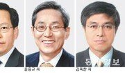 KB금융지주의 차기 회장으로 임영록 지주 사장이 내정된 뒤 경합했던 민병덕 KB국민은행장이 사의를 표명함에 따라 차기 행장 인선에 관심이 모아지고 있다. 6일 금융권에 따르면 차기 국민은행장으로 최기의 KB국민카드 사장, 윤종규 KB금융지주 부사장, 김옥찬 KB국민은행 부행장 등이 물망에 오르고 있다. KB금융지주 회장 최종 후보 4인 중 1명이었던 최 사장은 업무추진력이 뛰어나고 직원들의 신망이 두텁다는 평가를 받고 있다. 2010년 민 행장과 국민은행장 자리를 놓고 경합하기도 했다. 2001년 국민은행과 합병한 주택은행 출신으로 영업, 전략, 재무, 인사 등 요직을 두루 거쳤다. 윤 부사장은 현재 KB금융지주의 최고재무책임자(CFO)다. 행정고시 25회에서 차석으로 합격했으나 학내 시위를 주도한 혐의로 최종 임용에서 탈락해 공인회계사로 진로를 바꾼 특이한 경력을 갖고 있다. 재무 외에 2002년 전략기획과 2004년 영업부문 대표 등을 역임하면서 다방면에서 실력을 검증받았다는 평가다. 김 부행장은 은행 내 대표적인 재무전략가다. 연세대 법대를 졸업한 뒤 1982년 국민은행에 입행해 30여 년을 ‘KB맨’으로 지냈다. 증권운용팀장, 재무관리본부장, 재무관리 부행장, 경영관리 부행장 등을 두루 거쳤다. 합리적이고 부드러운 리더십으로 조직 내부의 신망이 두텁다. 이 밖에 강용희, 김형태 국민은행 부행장, 손영환 KB부동산신탁 사장, 정연근 전 부행장, 이달수 전 KB데이타시스템 사장 등도 후보로 거론된다. 은행장을 비롯한 계열사 최고경영자(CEO)는 지주 회장과 사장, 사외이사 2명 등 4명으로 구성된 대표이사추천위원회를 열어 선임하게 된다. KB금융 관계자는 “차기 회장이 공식 취임하는 7월 12일 이후에야 은행장 선임 과정이 진행될 것”이라며 “계열사 사장 및 임원들도 일괄 사표를 제출해 재신임을 물을 가능성이 크다”고 말했다.신수정 기자 crystal@donga.com}