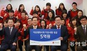 아모레퍼시픽은 취약 계층 여성 가장들의 자립을 지원하기 위해 사회복지공동모금회가 펼치는 ‘희망 2014 나눔캠페인’에 5억 원을 기탁한다고 21일 밝혔다. 이는 지난해 기탁금 규모보다 2억 원 늘어난 것이다. 아모레퍼시픽은 이날 오전 서울 중구 세종대로 사랑의열매 회관에서 김주현 공동모금회 사무총장(앞줄 왼쪽에서 두 번째), 김정호 아모레퍼시픽그룹 상무(앞줄 오른쪽에서 두 번째) 등이 참석한 가운데 기탁금 전달식을 가졌다.}