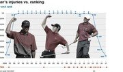 10일 넘게 붉은 꽃은 없다고 했던가. ‘골프 황제’로 10년 넘게 필드를 지배하던 타이거 우즈(42·미국)는 벌써 몇 년 째 추락의 아이콘 취급을 받고 있다. 부상에 시달리며 필드와 병원을 들락거리는 그는 올 해 주위의 기대 속에 미국프로골프(PGA)투어에 복귀했지만 계속 고개를 숙이고 있다. 이대로 선수 생활을 마감하고 있는 게 아니냐는 우려까지 나오고 있다. 미국 CNN은 1일 ‘우즈의 영광과 고통’이라는 기사를 통해 굴곡진 그의 필드 인생을 되돌아봤다. 그가 처음 수술대에 오른 건 스탠퍼드대에 다니던 1994년 12월이었다. 왼쪽 무릎에 있는 양성 종양 제거를 위해 칼을 댄 그는 허리에 부담을 많이 주는 스윙 탓에 이런저런 부상에 21차례나 시달렸다. 1997년 남자 골프 세계 랭킹 1위에 처음 오른 우즈는 역대 최장인 281주 동안 순위표 맨 꼭대기를 차지했다. 세계 랭킹 1위에 오른 기간만 해도 683주에 이른다. 하지만 최근 끝 모를 부진에 허덕이고 있는 우즈의 현재 랭킹은 711위까지 곤두박질쳤다. 황금알을 낳는 호랑이로 불리던 우즈. 10년 전인 2007년 그의 PGA투어 상금은 1000만 달러를 돌파하기도 했다. 통산 상금만도 1억1000만 달러가 넘는다. 하지만 2014년 상금 10만 달러, 2015년 40만 달러에 그치더니 지난 시즌에는 공백기를 가지며 상금 0달러를 기록했다. 김종석 기자 kjs0123@donga.com}