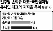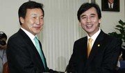 야권의 유력 대선주자인 민주당 손학규, 국민참여당 유시민 대표가 22일 얼굴을 마주했다. 유 대표가 취임 인사차 국회 민주당 대표실을 방문한 것. 4·27 경남 김해을 국회의원 보궐선거의 야권 후보 단일화 문제를 놓고 힘겨루기를 하는 상황이어서인지 30여분간 웃음과 덕담이 오가는 속에서도 미묘한 신경전이 펼쳐졌다. 손 대표는 “국민의 기대는 민주당과 참여당이 하나가 되라는 것”이라며 시종 ‘하나’를 강조했다. 이에 유 대표는 “전적으로 동감한다”면서도 “제1야당 대표의 큰 리더십으로 잘 이끌어주시고 다른 야당을 잘 보듬어 어려움을 타개할 것으로 믿는다. 민주당이 야권의 ‘큰집’ 아니냐”고 했다. 손 대표는 거듭 “국민의 기대는 야권, 민주 진보세력이 하나가 되라는 것이다. 중요한 것은 정권교체”라고 강조했다. 이에 유 대표는 “집권 자체가 최고의 선이 아니라 어떻게 하면 국가를 훌륭하게 만들 것인가가 중요한 문제로, 각자 가진 장점과 힘을 모아가면 (정권교체가) 가능하다”고 받았다. 손 대표는 ‘통합’에 방점을 뒀지만 유 대표는 ‘연대’를 강조하며 2012년 야권연대를 위해 김해을 선거에서 민주당 측의 양보를 요구했다는 해석도 나온다. 이날 유 대표는 김대중 전 대통령의 부인 이희호 여사도 예방했다. 한편 노무현 전 대통령의 부인 권양숙 여사가 21일 봉하마을을 찾은 손 대표에게 “(민주당 김해을 후보로 유력시됐던) 김경수 봉하재단 사무국장은 훌륭한 인재이니 잘 기억해달라”고 당부한 것으로 전해졌다. 민주당에서는 “유 대표에 대한 불편한 심기를 토로한 것”이라는 해석이 나왔다. 김 국장의 불출마 선언에는 유 대표 측의 강한 반발과 압박이 작용했다는 게 민주당 친노(친노무현) 인사들의 주장이다. 그러나 참여당 이백만 대변인은 “압박 운운은 사실무근”이라며 “김 국장에 대한 권 여사의 언급은 말 그대로 ‘훌륭한 인재’라는 뜻”이라고 반박했다. 권 여사는 2월 14일 봉하마을을 찾은 민주당 전·현직 의원과 지역위원장들에게 김해을 보궐선거와 관련해 “손가락 다섯 개가 모두 제 역할을 해야 물건을 잡을 수 있다”며 야권의 단결을 주문했다. 당시는 참여당이 노 전 대통령의 농업특보를 지낸 이봉수 후보를 낸 상황이었다. 이틀 뒤 김 국장은 “범야권 연대를 통한 승리의 밑거름이 되기를 희망한다”며 불출마를 선언했다. 22일 권 여사의 김 국장 치켜세우기에는 그런 김 국장에 대한 안타까움도 깔려 있다는 것이 민주당 쪽의 시각이다.조수진 기자 jin0619@donga.com이유종 기자 pen@donga.com}