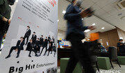 방탄소년단(BTS) 소속사 빅히트엔터테인먼트 주가가 상장 둘째 날 22% 넘게 떨어졌다. BTS의 전 세계적인 성공에 힘입어 증시에 입성하면서 큰 기대를 모았지만 주가는 탄력을 받지 못했다. 16일 코스피에서 빅히트는 20만500원에 거래를 마쳤다. 상장 첫날인 전 거래일보다 22.29%(5만7500원) 떨어지며 이틀 연속 하락했다. 공모가(13만5000원)보다는 여전히 48.5% 높다. 하지만 상장 직후 찍은 상한가(35만1000원)와 비교하면 15만 원 넘게 떨어졌다. 이날도 ‘기타법인’이 1321억 원을 순매도했다. 첫날(1770억 원)에 이어 이틀째 순매도를 이어갔다. 금융감독원에 따르면 기타법인은 빅히트의 기존 주주인 메인스톤유한회사 등으로 추정된다. 외국인과 기관은 각각 238억 원, 48억 원을 팔아치웠다. 개인이 1603억 원을 순매수하며 주가 하락을 떠받쳤다. 빅히트 시가총액은 6조7862억 원으로 전날의 8조7323억 원보다 2조원 가까이 줄었다. 시총 순위는 32위에서 38위로 내려갔다. 빅히트 주가 급락은 상장 전부터 제기된 공모가 고평가 논란과 BTS에 집중된 매출 구조 등이 영향을 미친 것으로 풀이된다. 빅히트의 아티스트 매출액에서 BTS가 차지하는 비중은 올해 상반기 87.7%에 이른다. 최민하 삼성증권 연구원은 “빅히트의 가장 큰 리스크는 BTS에 대한 매출 의존도가 높다는 점”이라며 “현행 병역법에 따르면 1992년생인 진(본명 김석진)은 내년 말까지 입대 연기가 가능해 이후 완전체 활동은 어려울 수 있다”고 지적했다.박희창기자 ramblas@donga.com}