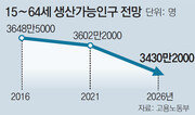 2026년 12월 A 씨(63)는 첫 직장에서 명예퇴직을 한 뒤 어렵게 아파트 경비원으로 취업했다. 대학을 졸업한 아들은 몇 년째 실업자 신세다. 그동안 모아둔 돈과 퇴직금은 아파트 대출금을 갚느라 모두 써버렸다. A 씨는 아들이 일자리를 얻는다 해도 계속 일할 생각이다. 2년 뒤부터 받을 연금으로는 생활비조차 대기 버겁기 때문이다. A 씨의 아들 B 씨(29)는 인문학 전공자다. 높은 학점에 어학연수를 다녀왔고 토익도 900점이 넘지만 몇 년째 취업에 실패했다. 10년 전만 해도 인문계열 졸업생이 어느 정도 취업이 됐다는데 이제는 인문계열 졸업자를 뽑는 공고 자체를 찾기 힘들다. 뿌리산업(제조업의 기반이 되는 6개 기술 산업)에 속하는 도금업체를 운영하는 C 씨(43)는 하루 10시간씩 혼자 일한다. 고졸 직원을 한 명 뽑고 싶지만 월급을 많이 주겠다고 해도 지원하는 사람이 없다. 특성화고에도 요즘 도금 기술을 배우는 학생이 없다고 한다. 10년 뒤 고령자와 청년층, 중소기업가들이 맞닥뜨릴 현실이다. 고용노동부는 19일 국무회의에서 보고한 ‘2016∼2026 중장기 인력수급전망’에서 저출산 고령화로 활력을 잃은 한국의 10년 뒤 노동시장을 이렇게 전망했다. 2016년 3648만5000명이던 15∼64세 생산가능인구는 2026년에 3430만2000명으로 218만 명가량이나 감소할 것으로 예측했다. 반면 전문대졸 이상의 고학력 인구는 같은 기간 332만 명 증가한다. 이에 따라 향후 10년간 노동시장에서 필요로 하는 고졸 인력 113만 명가량이 부족할 것으로 보인다. 노동시장 전체가 심각한 수급 불균형에 빠진다는 얘기다. 생산가능인구가 준다고 해서 청년 취업난이 해소되는 것은 아니다. 앞으로 10년간 4차 산업혁명이 가속화되면서 인문사회계열(5만1000명)과 자연계열(5만7000명) 대학을 졸업한 청년 10만8000명이 일자리를 구하지 못할 것으로 고용부는 내다봤다. 반면 4차 산업혁명 관련 일자리인 공학 연구개발(5만8000명)과 전자부품 제조업(4만8000명), 반도체 제조업(4만3000명) 등은 취업자가 크게 증가할 것으로 보인다. 정부 관계자는 “대학 정원 감축은 물론이고 노동시장 전반에 대한 대대적인 개혁이 필요한 시점”이라고 말했다.유성열 기자 ryu@donga.com}