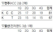 최하위 KCC가 신인 가드 박경상의 맹활약을 앞세워 시즌 두 번째 2연승을 맛봤다. KCC는 24일 전주에서 열린 KT와의 안방 경기에서 81-67로 승리하며 7승(28패)째를 올렸다. 지난해 10월 신인 드래프트에서 전체 4순위로 KCC의 지명을 받은 박경상이 데뷔 후 최고의 활약으로 팀에 귀한 연승을 안겼다. 1쿼터부터 9점을 몰아넣으며 기세를 올린 박경상은 양 팀에서 가장 많은 28득점에 리바운드 5개와 어시스트 4개를 곁들였다. 28점은 이번 시즌 신인 최다 득점이다. 종전 기록도 박경상이 갖고 있다. 박경상은 지난해 12월 15일 모비스전에서 24점을 넣었다. 박경상은 연세대 재학 시절 득점력은 최고였다. 그러나 부상이 잦고 가드로서 패스 능력이 기대에 못 미친다는 평가를 받아 신인 드래프트에서 3순위 안에 들지 못했다. 하지만 박경상은 이날 신인 드래프트에서 전체 1순위로 KT에 입단한 장재석(8득점)에 완승을 거뒀다. KCC 크리스 알렉산더는 더블더블(20득점, 10리바운드)의 활약으로 승리에 힘을 보탰다. 직전 경기에서 선두 SK를 25점 차로 완파했던 KT는 꼴찌 팀 KCC에 14점 차 패배를 당하며 들쭉날쭉한 경기력을 보였다. 전자랜드는 모비스를 67-65로 꺾고 3연패에서 벗어났다. 21승 13패가 된 3위 전자랜드는 2위 모비스(24승 11패)와의 승차를 2.5경기로 좁혔다. 모비스는 경기 종료 2.2초를 남기고 64-67로 뒤진 상황에서 자유투 3개를 얻었지만 이 중 1개만 성공시켜 승부를 연장으로 끌고 가는 데 실패했다. 26일과 27일 서울 잠실실내체육관에서 올스타전을 여는 프로농구는 29일까지 정규리그 휴식기를 갖는다. 이종석 기자 wing@donga.com}