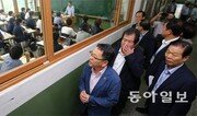서울시의회 교육위원회 소속 의원들과 서울시교육청 관계자들이 19일 오전 자율형사립고인 서울 강동구 배재고를 방문해 수업 모습을 둘러보고 있다. 양회성 기자 yohan@donga.com}