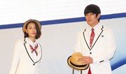 2014 인천 아시아경기대회 개막 30일을 앞두고 20일 서울 태릉선수촌 오륜관에서 열린 ‘은퇴 선수와 함께하는 국가대표 선수단 격려행사’에서 남녀 모델이 아시아경기 공식 단복을 선보이고 있다. 백의민족을 상징하는 흰색 재킷과 정열을 표현한 빨간색 바지를 기본으로 한 단복은 이날 처음 공개됐다. 양회성 기자 yohan@donga.com}