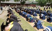 25일 서울 종로구 성균관대 대성전에서 이날 졸업하는 학생들과 교수들이 고유례(告由禮)를 올리고 있다. 고유례는 입학, 졸업 등 학교의 경사스러운 일이 있을 때 선현들에게 이를 알리는 의식이다. 양회성 기자 yohan@donga.com}