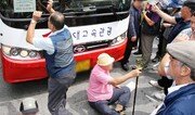박영선 국민공감혁신위원장 겸 원내대표 등 새정치민주연합 의원들이 29일 서울 종로구청 앞에서 세월호특별법 장외투쟁을 벌이려다 어버이연합 등 보수단체 회원들이 당 버스를 막고 드러눕는 바람에 버스에서 내리지 못하고 철수했다. 양회성 기자 yohan@donga.com}