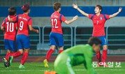 전가을(7번·현대제철)이 26일 대만과의 8강전에서 후반 28분 왼발로 결승골을 터뜨린 뒤 축하하러 오는 동료들을 맞이하고 있다. 한국은 예선 때 소속팀 일정으로 뛰지 못했던 지소연(10번·첼시)이 합류해 완승이 예상됐지만 대만의 강력한 수비에 막혀 어려운 경기를 펼친 끝에 1-0으로 이겼다. 한국은 중국을 꺾은 북한과 29일 4강에서 격돌한다. 인천=양회성 기자 yohan@donga.com}