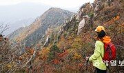 본격적인 단풍이 시작됐다. 5일 강원 설악산을 찾은 한 등산객이 한계령에서 대청봉을 바라보고 있다. 설악산 단풍은 18일경 절정에 이를 것으로 전망된다.설악산=양회성 기자 yohan@donga.com}