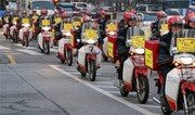 새해 첫 출근날인 4일 오전 서울 종로구 광화문우체국에서 열린 ‘2016 희망출발 집배원 발대식’을 마친 집배원들이 세종대로 주변에서 퍼레이드를 하고 있다. 김재명 기자 base@donga.com}