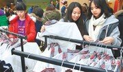 18일 서울 서대문구 연희로 서대문구청에서 열린 ‘교복 물려주기 나눔장터’에서 신입생들이 교복을 꼼꼼히 살펴보고 있다. 이곳에서는 중고 교복 한 벌을 2000원에 팔고 있다. 수익금은 교복을 기증한 학교에 전달하거나 장학기금으로 쓴다. 김재명 기자 base@donga.com}