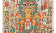 목을 완전히 젖혀야 전체를 볼 수 있는 높이와 눈이 어지러울 정도로 밝은 색조. 숭유억불에 갇혀 왠지 소박할 것만 같은 조선시대 불화에 대한 편견은 첫눈에 사라졌다. 서울 용산구 국립중앙박물관에서 전시되고 있는 ‘공주 신원사 괘불’(국보 제299호)은 높이 10m, 너비 6.5m, 무게 100kg에 이른다. 괘불(掛佛)은 규모가 있는 사찰에서 특별한 법회나 의식을 치를 때 야외에 걸어놓는 대형 불화를 말한다. 신원사 괘불은 1664년 6월 조성 이후 이번 전시까지 단 두 차례만 외부에 전시됐다. 첫 전시는 2005년 경남 양산 통도사의 성보박물관에서 이뤄졌다. 이번에는 부처님오신날을 맞아 지난달 28일부터 국립중앙박물관에서 전시되고 있다. 조선시대 괘불은 그림에 능한 승려(화승)들이 그렸다. 신원사 괘불은 17세기 충청도에서 주로 활동한 화승 응열(應悅)이 만든 첫 번째 괘불이다. 그를 포함해 총 5명의 화승이 그렸다. 응열은 9년 후 충남 예산 수덕사 괘불도 그렸다. 괘불은 한번 제작하면 오랫동안 사용해 화승 1명이 2개 이상을 그린 예가 드물다. 신원사 괘불은 응열의 독특한 개성이 잘 드러난다. 기존 괘불들이 구름으로 가장자리를 장식한 것과 달리 화폭에서 등장인물 수를 줄이고 부처 주변의 빛을 강조했다. 수행 끝에 깨달음을 얻은 부처의 위대함을 보여주려는 의도로 풀이된다. 섬세하게 장식한 옷과 반짝이는 구슬이 부처의 몸을 감싸고 있다. 색을 칠한 뒤 꽃이나 기하학 무늬를 더했는데 부처를 공경한 화승들의 정성이 느껴진다. 괘불에 그려진 부처는 ‘노사나불(盧舍那佛)’. 초록색 광배 위에 쓰인 한자를 통해 알 수 있다. 노사나불은 불교에서 오랜 수행을 거쳐 부처가 된 보신불이다. 그런데 불화 하단의 화기(畵記)에는 ‘석가모니불을 그렸다’고 적혀 있다. 이는 석가모니불과 노사나불이 서로 다른 몸으로 태어나 중생들에게 가르침을 전했지만, 결국 같은 여래라는 사상이 반영된 것으로 해석된다. 부처를 둘러싼 주변 인물도 찬찬히 살펴볼 만하다. 아래는 붉은 얼굴을 한 사천왕(불법을 수호하는 4명의 수호신)이 사방을 지키고 있다. 사천왕 주변에는 깨달음의 과정을 겪는 보살인 월광보살, 일광보살, 지장보살, 관음보살이 절구를 찧는 토끼가 그려진 달, 붉은 태양, 지옥에 있는 중생을 구해주는 구슬, 현실에 있는 중생을 위해 감로수를 담은 정병을 각각 들고 있다. 위쪽에는 부처의 가르침을 얻기 위해 5명씩 무리를 지어 찾아온 십대제자들이 있다. 그 위로는 공경의 마음을 담아 복숭아를 공양하는 천인(天人) 2명이 있다. 부처와 눈을 맞추며 그림을 살피다 보면 종교적 장엄함을 자연스레 느낄 수 있다. 불교사상을 잘 모르는 이라도 숨은그림찾기처럼 즐길 만한 요소들을 발견할 수 있을 것이다. 9월 26일까지. 무료.김태언 기자 beborn@donga.com}