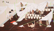 제2차 세계대전 당시 독일 공군 부조종사가 몬 전투기가 러시아 크림반도에서 격추됐다. 그를 구해준 이는 타타르 유목민. 동물 지방과 펠트 천으로 감싸여 치료를 받은 그는 이후 미술가의 길로 들어섰다. 그의 이름은 요제프 보이스(1921∼1986). 그는 한때 자신을 죽음에서 구해준 펠트를 이용해 여러 작품을 만들었다. 그에게 펠트는 생명을 지키는 에너지이자 따뜻함 자체였다. 22일 열린 서울 종로구 국립현대미술관 ‘재난과 치유’ 기획전의 포스터 작품은 요제프 보이스의 ‘곤경의 일부’다. 작품을 통해 개인적, 사회적 상처를 치유하고자 한 그의 의도처럼 이번 전시는 신종 코로나바이러스 감염증(코로나19) 사태를 맞아 관람객에게 예술을 통한 위로를 건넨다. 윤범모 국립현대미술관장은 25일 언론 간담회에서 “감정 표현이 매우 절제된 한국 미술문화에서 재난과 희비애락이 대담하게 표현된 경우는 드물다. 이런 전통에 도전하는 전시”라고 소개했다. 행위예술가 프란시스 알리스의 영상 작품 ‘금지된 발걸음’은 전시 취지와 맞닿아 있는 대표작이다. 뿌연 화면 사이로 숲 어딘가에 버려진 듯한 콘크리트 건물이 나온다. 난간 하나 없는 옥상. 경계를 벗어나는 순간 추락할 수밖에 없는 옥상을 한 남자가 더듬거리듯 걷는다. 지난해 10월 홍콩 라마섬을 배경으로 제작된 이 작품은 인간에게 닥친 팬데믹의 불확실성을 상징한다. 이진주는 구조물의 단면에 회화를 그려 넣은 작품 ‘사각’에 코로나19로 인한 고통을 담았다. 핏물이 채워진 수영장에 마스크를 끼고 앉은 소년들과 흰 천을 뒤집어쓴 사람들의 모습은 답답함과 불안함을 동시에 느끼게 한다. 불안은 단지 감정으로만 그치지 않는다. 방역당국이 “코로나19 발생 이전의 세상은 이제 다시 오지 않는다”고 밝혔듯 코로나 이후 일상의 공간은 더 이상 이전과 같지 않게 됐다. 서도호는 손잡이를 매개로 이 같은 변화를 포착했다. 손잡이를 만지는 행위는 어느새 강박과 두려움을 낳았다. 3차원(3D) 모델링을 활용한 설치 작품은 손잡이 모형 주위로 바이러스가 퍼지는 형상을 연상시킨다. 사회적 거리 두기에도 누군가는 위험을 무릅쓰고 직장에 나와야 한다. 상당수는 플랫폼 노동자들이다. “누군가의 안전은 누군가의 위험을 담보로 성립된다”는 홍진훤은 배달 노동자들에게 주목한 작품을 선보였다. 한쪽 다리를 절며 하염없이 움직이는 영상작품 ‘Injured Biker’를 보고 있노라면 재난이 불러온 소외를 직면하게 된다. 불가항력의 재난 현실에도 김범은 희망을 찾는다. 그는 높이 4m, 폭 3m의 거대한 화폭에 미로를 그려 재난이 뒤덮은 현실을 보여준다. 하지만 자세히 보면 상단 왼쪽에 작은 입구가, 하단 오른쪽에 출구가 각각 있다. 전시를 기획한 양옥금 학예연구사는 “전시기획 때부터 크게 다가온 작품이다. 분명 어딘가에 출구는 있다고 말해주는 듯하다”고 말했다. 이배는 설치예술작 ‘불로부터’를 통해 나무가 타고 남은 숯에 존재감을 부여하며 긍정의 메시지를 전한다. 숯은 우리 생활의 에너지원이다. 재난이 닥쳐도 그 이후의 삶을 꿈꾸며 살아가자는 바람을 담았다. 전시는 5가지 소주제로 나뉘어 있지만 이에 국한하지 않고도 충분히 감상할 수 있다. 그만큼 코로나19가 우리 삶에 깊숙이 침투해 있다는 방증일 것이다. 봉준호 감독의 단편영화 ‘인플루엔자’도 이번 전시에 포함됐다. 국내외 작가 35명이 60여 점의 작품을 선보인다. 8월 1일까지. 무료.김태언 기자 beborn@donga.com}