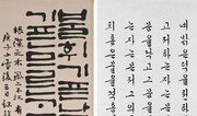 독립기념관 한글현판, 삼성그룹 로고, 이승만 박정희 전 대통령과 백범 김구의 비문. 근현대 서예 대가 일중(一中) 김충현(1921∼2006)이 남긴 서예 작품들이다. 일중은 일제에 맞서 한글서예의 명맥을 이어가는 걸 자신의 사명으로 삼았다. 그의 글씨는 유관순 윤봉길 기념비, 수정아파트 등 700여 개 비문과 동상 등에 남아 있다. 서예에 조예가 깊었던 이승만 대통령은 한강대교 한글 현판 등 국가 주요 건조물에 그의 글씨를 사용하도록 지시했다. 손 글씨보다 컴퓨터 활자가 훨씬 익숙한 시대이지만 우리 일상 곳곳에 일중이 남긴 서예의 흔적이 살아 숨쉬고 있다. 일중선생기념사업회는 8일부터 서울 종로구 백악미술관에서 일중 탄생 100주년 특별전 ‘一中, 시대의 중심에서’를 연다. 일중이 서예를 본격적으로 시작한 1938년도부터 광복 후 자신만의 독자 서체를 만들어내고 동시대 예술가들과 교류하기까지의 작품 150여 점을 선보인다. 일중은 서예에 눈을 뜬 청소년 시절부터 국한문을 가리지 않고 서예를 익혔다. 17세이던 1938년 그는 동아일보 주최 전조선남녀학생작품전에서 대학에 나오는 수신제가치국평천하(修身齊家治國平天下) 문구를 한글로 써 특상을 받았다. 같은 공모전에 한문 해서(楷書)체로 쓴 작품도 출품했다. 국한문 서예에 대한 관심은 말년까지 이어져 여러 작품들에 한글과 한문이 섞여 있다. 광복 전 그가 집중적으로 연구한 건 궁체(宮體)였다. 궁체는 한글이 지니고 있는 붓글씨로서의 멋과 아름다움을 가장 잘 보여주는 글씨체다. 그는 궁체를 한글서예의 근간으로 여겼다. 궁체를 통해 민족의식을 이어가고자 궁체 서법을 정리한 서예 교본을 여럿 편찬했다. 1970년대 한글 고유 글꼴을 찾던 디자인계의 대부 최정호(1916∼1988)는 일중에게 자문해 독특한 궁체를 개발했다. 그는 광복 후 한국적 서체에 더욱 매달렸다. 일제에 의해 억압된 고유문화가 회복되고 독립지사들을 기리기 위한 기념비 제작이 활발히 이뤄지던 시절이었다. 그는 당시 한글 고체(古體)를 창안한다. ‘용비어천가’ ‘훈민정음’ 등 판본체(초기 인쇄체)에 전서, 예서의 필법을 가미한 것. 고체는 현재까지도 고판본을 붓글씨로 쓰려는 사람들의 길잡이 역할을 하고 있다. 그의 작품 ‘용비어천가’(1960년)에 담긴 고체는 궁체에 비해 웅장해 멀리서도 잘 보인다. 그의 독창성은 비슷한 시기에 쓴 독특한 한문 예서체에서도 드러난다. 전통 예서체에 한글 서체를 혼합한 이른바 ‘일중체’를 창안한 것. 그의 작품 ‘서산만조’(1979년)에서 보듯 직사각형에 가까운 한글의 특징이 반영돼 가장 한국적인 예서체로 평가된다. 1970년대 말 급격한 산업화로 사회가 급변하는 가운데 한국의 정체성을 담으려고 고심한 작가의 의도를 엿볼 수 있다. 서예계는 그의 호 일중이 ‘마음(心)에 하나(一)의 중심(中)이 서면 충(忠)이 된다’는 의미를 담고 있듯 일중의 작품은 한국의 고유성을 일관되게 유지했다고 평가한다. 김현일 백악미술관장은 “다양한 문자가 한 화면에 모여 있는 일중의 작품은 글자의 개성을 존중하면서도 이를 조화롭게 포용하는 서예의 미학을 보여준다”고 말했다. 전시는 7월 6일까지. 이후 올 10월부터 제주 소암기념관에서 순회전이 열린다. 무료.김태언 기자 beborn@donga.com}