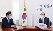 “4차 추가경정예산(추경)을 빨리 (편성)해서 신종 코로나바이러스 감염증(코로나19)으로 경제적 어려움을 겪고 있는 분들께 선별적 지원을 해야 한다.”(미래통합당 김종인 비상대책위원장) “4차 추경은 불가피하다고 생각한다. 당정협의가 진행 중인데 곧 하는 쪽으로 결론이 날 것이다.”(더불어민주당 이낙연 대표) 민주당 이낙연 대표가 취임 후 처음으로 1일 통합당 김 위원장을 만났다. 이 자리에서 두 대표는 긴급재난지원금 추가 지급을 위해 4차 추경을 편성한다는 데에 의견을 같이했다. 민주당이 4차 추경 편성에 본격 드라이브를 걸고 나선 데에 이어 여야 수장도 뜻을 모은 만큼 추석 전 재난지원금 지급을 위한 추경 편성에 속도가 붙을 전망이다. 김 위원장이 먼저 “코로나19가 경제에 미치는 영향이 너무 크기 때문에 빨리 정치권에서 해결해줘야 한다”며 “이 대표도 선별 지원하겠다는 생각이기 때문에 여야가 별로 이견이 없으리라 생각한다. 그런 점부터 풀어 나가면 조금씩 여야관계가 쉽게 이뤄질 수 있을 것”이라고 운을 띄웠다. 그러자 이 대표도 “(당정 협의가) 며칠 안 걸릴 것”이라고 했다. 취재기자와 정치인으로 처음 만나 40년 이상 인연을 이어온 두 사람은 이날 덕담으로 상견례를 시작했다. “앞으로 원만하게 정치를 잘 풀어갈 수 있도록 노력해달라”는 김 위원장의 인사에 이 대표는 “제가 대표님(김 위원장)을 모신 게 햇수를 헤아릴 수 없을 정도로 긴 세월이었다. 늘 지도해 주셨듯 이번에는 더 많이 지도해주시길 부탁드린다”고 화답했다. 화기애애한 분위기만 이어지진 않았다. 두 대표는 여야 협치의 필요성을 강조하면서도 상임위원장 배분 재협상 및 경제민주화 입법 등에 대해선 미묘한 신경전을 벌였다. 이 대표는 “제1야당으로서 쇄신의 노력을 보여준 것은 환영할 일이라 생각한다”며 “특히 (김 위원장도) 관심을 갖고 있는 국회 내 비상경제특위를 빨리 가동하고, 경제민주화도 포함해 상법과 공정거래법도 여야가 함께 논의할 수 있으면 좋겠다”고 했다. 그러자 김 위원장은 “대통령이 협치를 하겠다고 양당 원내대표에게 말씀하셨는데 이후 원 구성 과정에서 과거 관행이 깨졌다”며 “이 대표가 새로 선출됐기 때문에 여러 정치 상황이 바뀔 수도 있다고 생각한다”고 했다. 민주당이 독식한 국회 상임위원장 문제를 꺼낸 것. 이에 이 대표는 “국회 문제는 참 아쉽다”면서도 “그러나 금년 개원 협상 과정에서 두세 달 동안 겪었던 우여곡절을 또 반복할 겨를이 없다고 생각한다”고 선을 그었다. 이 대표는 뒤이어 통합당 주호영 원내대표를 만난 자리에서 “정책에서의 협치는 쉽게 이뤄질 것이라 생각한다”며 “협의 과정에서 원칙은 지키지만 양보할 것은 양보하는 유연함을 보이겠다”고 했다. 회동에 앞서 이 대표는 이날 오전 라디오에 출연해 김 위원장의 차기 대선 출마설에 대해 “그럴 수 있다”고 말했다. 그는 “그런 얘기를 바람결에 들은 적은 있다. 가능성이야 늘 있는 것 아닌가”라며 이같이 밝혔다. 그러면서 “선택은 그 당과 국민이 하실 일”이라고 했다. 최근 김 위원장 주도로 이어져 온 통합당의 ‘좌클릭’ 행보에 대해서는 “환영할 만한 일”이라면서도 진정성 파악이 필요하다고 강조했다. 그는 “양극화를 완화하자면서 증세에 반대한다면 진정성에 손상이 갈 것”이라며 “(김 위원장이) 5·18 묘소에서 무릎을 꿇으셨는데 5·18 진상조사에는 협조를 안 하면 신뢰가 무너지게 될 수도 있다”고 했다. 김지현 기자 jhk85@donga.com}