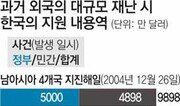 동일본 대지진 피해 복구를 위한 정부와 민간의 지원 액수가 지난해 아이티 대지진 때의 4750만 달러를 넘어 사상 최대치를 기록할 것이라는 관측이다.정부 당국자는 16일 “재계가 2005년 미국에 지원했던 금액(1700만 달러)보다 많은 사상 최대 규모의 특별성금을 모으기로 한 데다 연예인 등이 적극 동참하고 있다”며 “일본의 피해 규모와 두 나라의 지리적 인접성 등을 감안할 때 정부와 민간을 합친 국가 차원의 지원 규모가 아이티 사건 때를 뛰어넘을 수 있다”고 말했다. 정부 지원 규모는 아직 확정되지 않았다. 정부 당국자는 “상당한 규모의 예산이 필요할 것”이라며 “현재로선 규모나 방법 등이 결정되지 않았다”고 말했다. 당국자들의 조심스러운 태도는 아직 청와대의 최종 판단이 내려지지 않았고 이달 말로 예정된 일본의 교과서 검정 결과가 발표된 이후 국내 여론의 향배도 고려해야 하기 때문이라는 관측도 나온다.정부지원금은 예비비에서 충당될 예정이다. 선진국이 재난을 당했을 때 지원할 수 있는 연간 예산(20만 달러) 가운데 지난달 뉴질랜드 크라이스트처치 지진 때 15만 달러를 지출하고 남은 돈이 5만 달러뿐이기 때문이다. 한편 정부는 일본 측 지원 창구를 일본적십자사로 단일화했다. 민동석 외교통상부 2차관은 “일본 측의 요청에 따라 민간단체들의 성금은 대한적십자사가, 지방자치단체들은 행정안전부를 통해 외교부가, 기업 성금은 전국경제인연합회를 통해 대한적십자사가 취합해 모두 일본적십자사에 전달키로 했다”고 설명했다.또 정부는 일본의 요청에 따라 원자력발전에 쓰이는 붕산 52.6t을 지원하기로 했다. 붕산은 연료봉의 중성자를 잡아 핵분열을 억제하는 흡수재인 붕소가 포함된 물질이다. 한국이 지원키로 한 붕산 52.6t은 일본이 요청한 물량 전량이다.신석호 기자 kyle@donga.com주성원 기자 swon@donga.com}