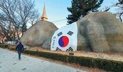 대구 달서구가 3·1절을 앞두고 애국심을 고취하기 위해 이색 캠페인을 벌이고 있다. 상화로에 있는 길이 20m, 높이 6m 크기의 조형물 ‘2만 년의 역사가 잠든 곳’에 초대형 태극기 문양 마스크를 씌운 것. 달서구는 21일 자체 제작한 태극기 마스크를 조형물에 설치하며 캠페인 시작을 알렸다. 가로 3.7m, 세로 3.5m 크기의 태극기 마스크를 잠든 원시인 형상을 하고 있는 조형물의 얼굴 부위에 씌웠다. 이태훈 달서구청장은 “1919년 대한민국의 독립 의지를 전 세계에 알린 순국선열들의 숭고한 독립정신을 되새기자는 뜻에서 태극기 마스크를 설치했다”고 말했다. 태극기 문양 하단에 새긴 회복할 복(復) 자도 눈길을 끈다. 코로나19 장기화로 지친 시민들이 다시 희망을 찾기를 기원하는 메시지를 담았다고 한다. 달서구는 2006년 진천동과 월성동 일대에서 구석기시대 유물이 출토된 이후 선사시대 관광자원을 집중 개발하고 있다. 2018년 설치한 ‘2만 년의 역사가 잠든 곳’ 역시 이색 조형물로 전국적인 관심을 받고 있다. 특히 코로나19가 창궐한 2020년에는 달서구가 시민들의 느슨해진 코로나19 경각심을 일깨우기 위해 마스크를 처음 씌워 각광받기도 했다.명민준 기자 mmj86@donga.com}