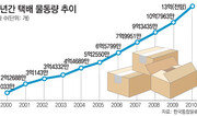 인천 대한통운 택배사업소에선 최근 작은 해프닝이 있었다. 택배상자가 혼자 흔들거리는 것을 본 직원이 뚜껑을 여는 순간 수탉 한 마리가 튀어나온 것. 의뢰인에게 연락해보니 “병아리를 사다 아파트에서 키웠는데 덩치가 커지고 새벽마다 울어서 시골에 보내려 한다”며 “닭 한 마리 보내자고 사람이 직접 가기가 그래서…”라고 말했다. 대한통운 관계자는 “닭, 토끼, 햄스터 등 각종 동물이 택배상자 안에서 종종 발견된다”며 “모두 택배가 일상화되면서 생기는 일”이라고 말했다. ○생활 속 파고든 택배업 2일 택배업계에 따르면 지난해 우리나라 국민 1인당 21상자의 택배를 보내거나 받았다. 우리보다 15여 년 먼저 택배 서비스를 시작한 일본(1인당 27상자)에 필적하는 수치다. 저녁 국거리로 쓸 쇠고기를 당일 오전 인터넷 쇼핑몰에서 주문하는 주부가 이상하게 보이지 않을 정도로 택배 서비스의 질도 높아졌다. 김태승 대한통운 택배산업부장은 “국내 택배산업도 성숙기에 접어들고 있다”며 “지난 10년이 초고속 성장을 하면서 사업기반을 마련하는 시기였다면 앞으로는 메이저업체들 간 터미널 등 기반시설 확대를 통한 규모 경쟁, 고객 밀착형 서비스 경쟁이 더욱 치열해질 것”이라고 말했다. 택배업계는 최근 터미널 확충에 열중하고 있다. 터미널은 발송인으로부터 물건을 받은 후 배달하는 지역별로 다시 분류하는 장소다. 늘어나는 물량을 빠르고 정확하게 전달하기 위해선 터미널 시설의 확보와 첨단화가 가장 중요하다. 대한통운은 올해 추석 전까지 720억 원을 투자해 대전 대덕구 문평동에 하루 50만 상자 이상 분류가 가능한 허브터미널을 만든다. 지하 1층, 지상 4층 규모다. 대한통운 측은 “페덱스, DHL 등 세계적 물류회사가 쓰는 최신 자동화물 분류기를 설치할 계획”이라며 “예전보다 배송이 30% 더 빨라지고 정확해질 것”이라고 말했다. 한진택배는 서울 구로허브터미널 규모에 필적하는 허브터미널을 수도권에 하나 더 만들 계획이다. 한진택배는 “전체 택배의 50%가 수도권에서 이뤄진다”며 “새로 짓는 터미널과 구로터미널을 ‘투톱(Two-Top) 시스템’으로 삼아 수도권 소비자들에게 생활밀착형 서비스를 제공할 것”이라고 말했다. ○로또 판매점도 택배 취급점으로 택배 물품을 보내고 받을 수 있는 택배 취급점도 갈수록 많아지고 있다. 현대로지엠은 “현재 6000여 개인 전국 택배 취급점을 올해 말까지 1만 개로 확대할 방침”이라고 말했다. 현대로지엠은 세븐일레븐, 미니스톱, GS리테일 등을 전담 택배 취급점으로 확보했다. 지난달부터 KT 서비스 매장인 ‘쿡앤쇼(Qook & Show)’에서도 택배 서비스를 시작했다. 로젠택배는 로또 판매점과도 계약을 했다. 로젠택배는 “수도권 로또 판매점 100여 곳과 시범 서비스를 시작했다”며 “세탁전문점과도 협약을 맺기 위해 논의 중”이라고 말했다. 택배업계는 최근 용달업계와 업무제휴 협약을 맺으면서 고질적 문제였던 택배차량 부족 현상도 얼마간 해소할 수 있을 것으로 보고 있다. 한국통합물류협회와 용달협회는 지난달 유휴 용달차량을 택배업에 쓸 수 있도록 하는 양해각서(MOU)를 체결했다. 배명순 한국통합물류협회 사무국장은 “각 택배업체는 회사당 수백 대의 차량이 부족한 반면 용달차량은 7000대 정도가 놀고 있다”며 “협약을 통해 택배업계는 차량 부족 문제를 해결하고 용달업계는 경영 개선에 도움이 될 것”이라고 말했다. 택배상자에서 나온 수탉은 어떻게 됐을까? 아직까지 살아있는 동물은 택배가 안 되기 때문에 의뢰인에게 돌아갔다. 김현지 기자 nuk@donga.com}