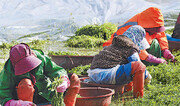 예년보다 포근한 겨울날씨가 이어지고 있는 7일 전남 나주시 노안면의 돌미나리밭에서 주민들이 따스한 햇살을 받으며 잘 자란 돌미나리를 수확하고 있다. 박영철 기자 skyblue@donga.com}