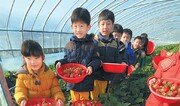 한파가 계속되고 있는 12일 광주 북구 용전동 지산딸기출하장에서 딸기 수확 체험에 나선 어린이들이 싱싱한 딸기를 수확하여 활짝 웃고 있다. 박영철 기자 skyblue@donga.com}