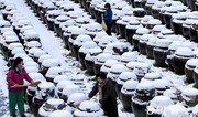 13일 전남 담양군 창평면의 한 농가에서 주민들이 항아리에 수북하게 쌓인 눈을 털어내고 있다. 이날 전국 곳곳에서 눈 소식이 전해진 가운데 14일에도 충남과 전북, 전남 북부, 경남 서부 내륙에 눈이 오는 곳이 있겠다. 담양=박영철 기자 skyblue@donga.com}