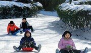 폭설이 멈춘 25일 광주 북구 중외공원에는 눈이 쌓인 언덕에 자연이 만든 눈썰매장이 생겨 어린이들이 즐겁게 눈썰매를 즐기고 있다. 박영철 기자 skyblue@donga.com}