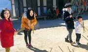 설 연휴 마지막 날인 10일 전남 순천 낙안읍성 민속마을을 찾은 어린이들이 투호놀이 등 전래민속놀이를 체험하고 있다. 박영철 기자 skyblue@donga.com}