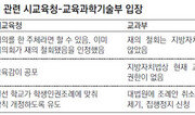 곽노현 서울시교육감의 직무 복귀 첫날인 20일 교육과학기술부와 곽 교육감이 학생인권조례를 둘러싸고 정면충돌했다. 곽 교육감이 서울시의회에 학생인권조례 재의 철회를 요구하자 교과부가 제지하고 나선 것이다. 곽 교육감은 이날 오후 학생인권조례 재의 철회 공문을 시의회에 제출했다. 앞서 9일 이대영 서울시교육감 권한대행이 냈던 재의 요구를 뒤집은 것. 곽 교육감은 “재의 요구를 철회하는 순간 공포되는 것과 다름없다”며 “학생인권조례가 효력을 발휘할 것이다”고 말했다. 그러나 교과부는 즉각 “재의 철회는 법적 근거가 없고, 교과부 장관의 재의 요구 요청권을 침해한다”며 이주호 장관 명의로 곽 교육감에게 ‘재의 요구 요청’ 공문을 보냈다. 지방교육자치법 28조의 ‘교육감이 교과부 장관으로부터 재의 요구를 하도록 요청받은 경우에는 의회에 재의를 요구해야 한다’는 조항에 따라 교과부 장관의 재의 요구 요청권을 행사한 것이다. 교과부 관계자는 “철회에 대한 법률이 없어 재의 철회 자체가 불가능한데도 곽 교육감이 강행했기 때문에 적절한 대응에 나선 것”이라고 밝혔다. 서울시교육청은 교과부의 재의 요구 요청을 받아들일 수 없다고 맞받았다. 이에 따라 교과부와 곽 교육감 사이의 재의 공방은 법제처 등의 유권 해석을 받아야 할 것으로 보인다. 학생인권조례에 반대했던 단체들의 반발도 이어지고 있다. 학교를 사랑하는 학부모모임은 이날 서울중앙지법에 학생인권조례안 공포 집행정지 가처분 신청을 냈다. 한국교원단체연합회 등 일부 시민단체는 헌법재판소에 학생인권조례안 효력정지 가처분 신청을 내기로 했다. 이날 넉 달 만에 복귀한 곽 교육감의 출근길은 험난했다. 오전 7시 반부터 시교육청 정문 앞에는 그의 출근을 저지하려는 시민단체들의 시위가 이어졌다. 바른사회시민회의 등 10개 단체는 “선거법 위반으로 100만 원 이상 벌금형을 받으면 직을 잃게 되는데 30배의 벌금액(3000만 원)을 받은 곽 교육감의 죄질은 더욱 심각하다”며 즉각 사퇴하라고 촉구했다. 한편 서울시교육청은 곽 교육감의 재판 결과에 대해 검찰이 ‘화성인 판결’ 등의 발언을 한 것과 관련해 “서울중앙지검장은 망언한 서울지검 관계자를 색출해 징계하고 지검장이 공식 사과하라”고 요구했다.김희균 기자 foryou@donga.com 최예나 기자 yena@donga.com }
