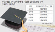 기성회비는 국공립대의 등록금을 올리는 가장 큰 요인이면서도 학생을 위한 교육비가 아니라 교직원을 위한 돈으로 쓰인다는 점이 문제다. 이런 기형적 구조가 굳어진 책임은 교육 당국에도 있다. 기성회비는 열악한 정부의 고등교육 재정 지원을 만회하기 위해 사실상 학부모에게 손을 벌리게 만든 제도다. 연구비와 시설비에 쓰라는 취지로 만들어졌지만 법적 근거는 없다. 정부가 국공립대에 대한 지원을 크게 늘리지 않으면서도 수업료 인상폭은 직간접적으로 규제하자 대학들은 기성회비를 올리는 편법을 택했다. 실제로 기성회비 인상률은 해마다 수업료 인상률의 배에 달한다. 국공립대는 이렇게 올린 기성회비를 49년간 교직원 인건비 등으로 사용하다가 이번에 철퇴를 맞았다. 국공립대는 교수는 물론이고 연구를 하지 않는 일반직 및 기능직 직원에게도 연구보조 교재연구 직무연구 같은 명목으로 1인당 연간 수백만∼수천만 원의 인건비를 추가로 지급했다. 일명 급여 보조성 인건비다. 2010년 국정감사에 따르면 40개 국립대가 2002∼2010년 기성회비를 이용해 급여 보조성 인건비를 2조8172억 원 지급했다. 기성회 회계에서 이런 인건비가 차지하는 비중은 서울대 27%, 충북대 23.8%, 경북대 23%, 부산대 22.7%, 강원대 22.5%에 이른다. 장기근속자 격려비나 교직원 해외 연수비, 선물 구입비로도 쓰였다. 국민권익위원회에 따르면 지난해 A대는 장기 근속자에게 순금 5∼15돈(1돈은 3.75g)을 주느라 기성회비 1억9505만 원을 썼다. B대는 지난해 일반 직원의 20%가량을 해외연수 보내면서 기성회비 7625만 원을 썼다. 교과부는 이런 폐해를 막기 위해 국립대의 급여 보조성 인건비를 없애고, 중장기적으로는 기성회비를 폐지해 수업료로 통합하는 방안을 추진하고 있다. 그러나 국공립대는 기성회비로 인건비를 보전하지 않으면 교직원의 임금 수준이 너무 낮아진다고 항변한다.김희균 기자 foryou@donga.com 손효주 기자 hjson@donga.com}